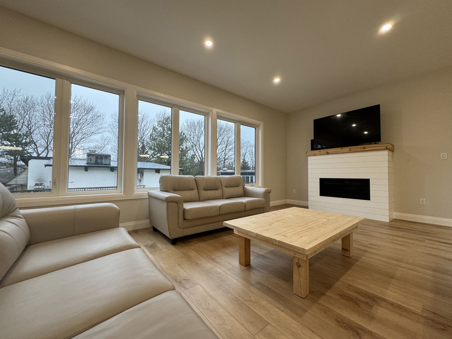 This large 2,700 sq ft 3 level, 6 bedroom, 3 bathroom Swiss-style chalet boasts wonderful views of Blue Mountain. Enjoy the view of Blue Mountain from the spacious deck or from the comfort of the living room with a natural gas fireplace.